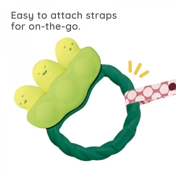 Didelio žiedo dizaino dėka patogiai tvirtinamas/pakabinamas. Taip kūdikis kramtuko nenumes, jis ilgiau išliks švarus.