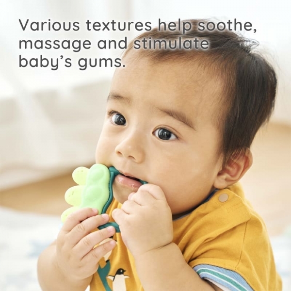 Įvairios kramtuko tekstūros ramina, masažuoja ir stimuliuoja kūdikio dantenas.