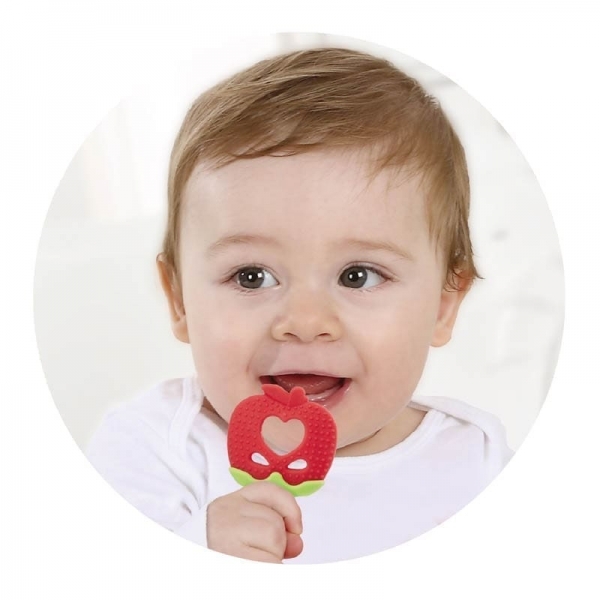 Patrauklus ir realistiškas obuolio dizainas skirtas mažų burnyčių ir rankyčių tyrinėjimams.3 skirtingo kietumo kramtuko tekstūros ramina, masažuoja ir stimuliuoja perštinčias kūdikio dantenas dantukų dygimo periodu.
