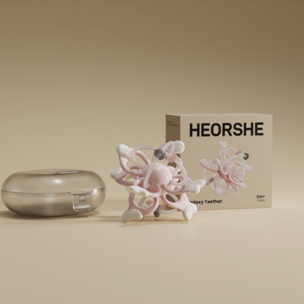 Heorshe „Kosminis“ kramtukas – saugus ir žaismingas pagalbininkas mažyliui nuo 6 mėnesių, kai dygsta pirmieji dantukai. Pagamintas iš minkšto maistinio silikono, jis švelniai masažuoja dantenas ir padeda nuraminti diskomfortą. Patogi forma lavina mažylio smulkiąją motoriką ir suėmimo įgūdžius.