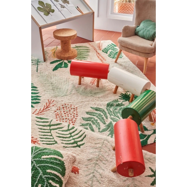 Kaip ir augalus, šį kilimą galima padėti bet kur – tiek vaikų kambaryje, tiek svetainėje. Botanikos įkvėptas dizainas – tarsi gamtos iškarpa. Ryški spalvų paletė primena daugelį metų laikų: vandens mėlyna žiemai, aukso geltona vasarai, terakota rudeniui ir ryškiai žalia pavasariui.