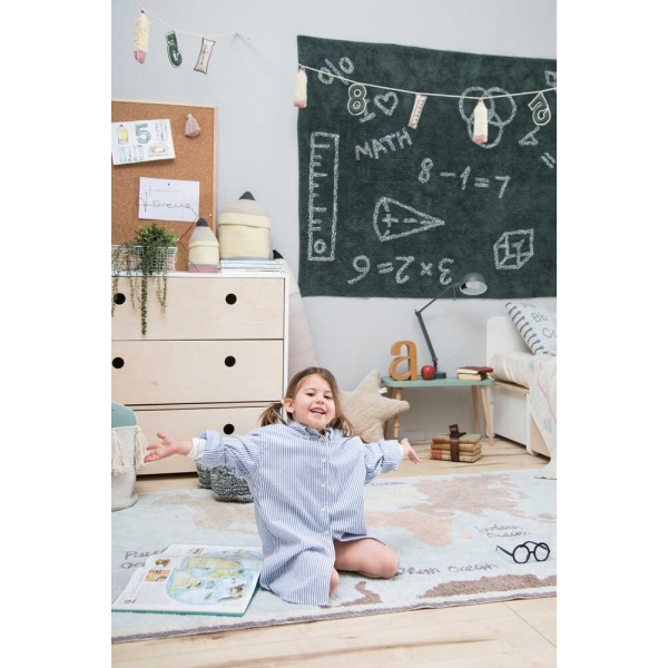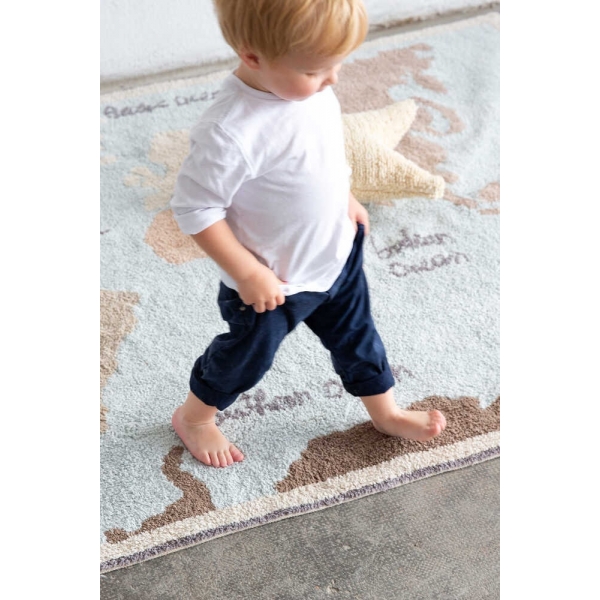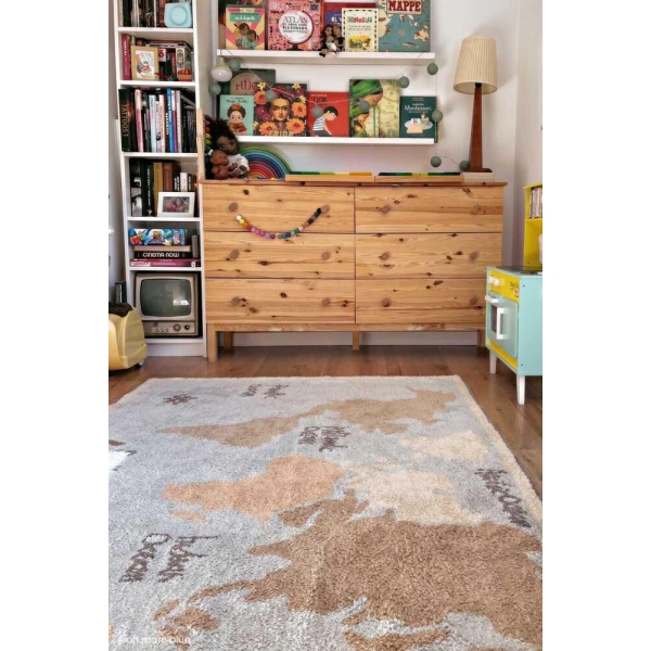 Klasikinis LORENA CANALS kilimas su pasaulio žemėlapiu dabar yra atnaujinto dizaino ir spinduliuoja senovine išvaizda. Ant kilimo matomi žemynai ir vandenynai, dominuoja švelnios natūralios spalvos. Jis tinka ir grindims, ir sienoms!