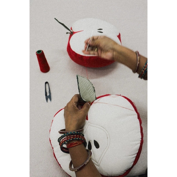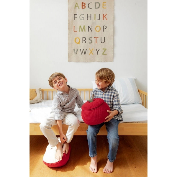 Šis nuostabus obuolys papuoš bet kurį baldą ir puikiai tiks tiek poilsiui, tiek žaidimams. Rankų darbo medvilninė pagalvėlė yra pusės obuolio formos su audinio lapu viršuje, suteikiančiu jūsų vaikų kambariui gaivumo, vaisių įkvėptos nuotaikos. Derinkite ją su savo namų interjeru!