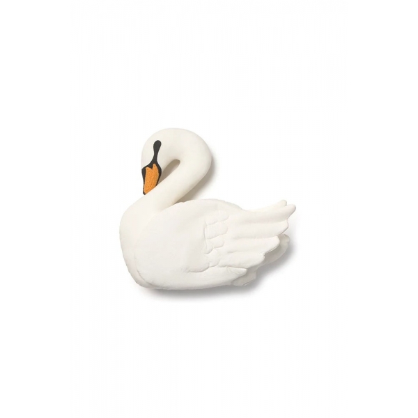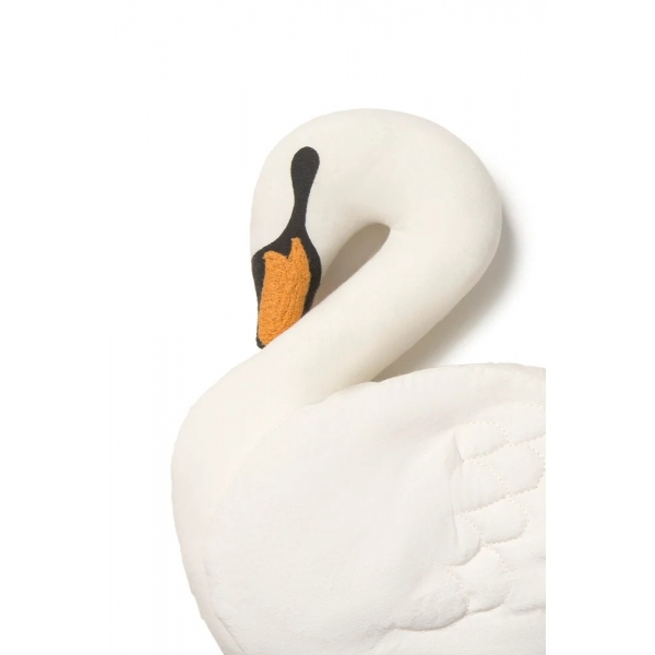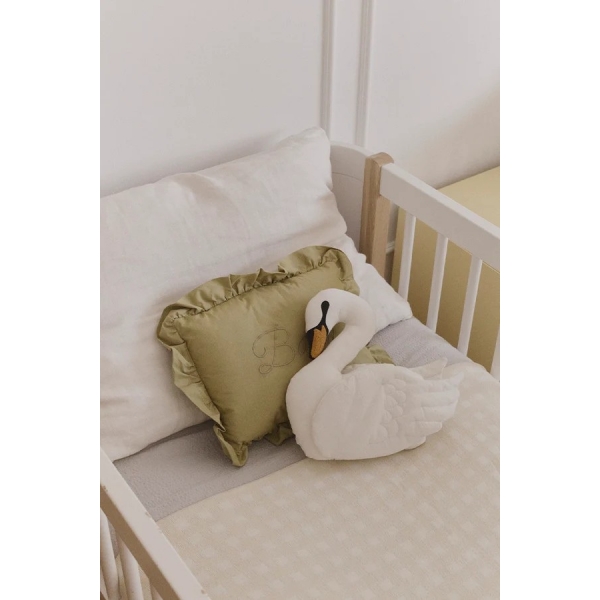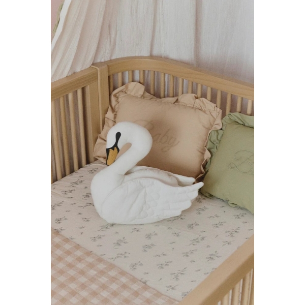 Papuoškite mažylio kambarį mūsų gulbės pagalve švelnaus dramblio kaulo atspalvio. Ji pasižymi subtiliomis juodomis šilkografijos detalėmis, siuvinėtu ir šiek tiek iškilusiu oranžiniu snapeliu, o siūtais sparnais suteikiama dar daugiau charakterio. Maža ir jauki, ši pagalvė puikiai tinka lovelėje, įnešdama subtilų, žaismingą akcentą į bet kurį kampelį.