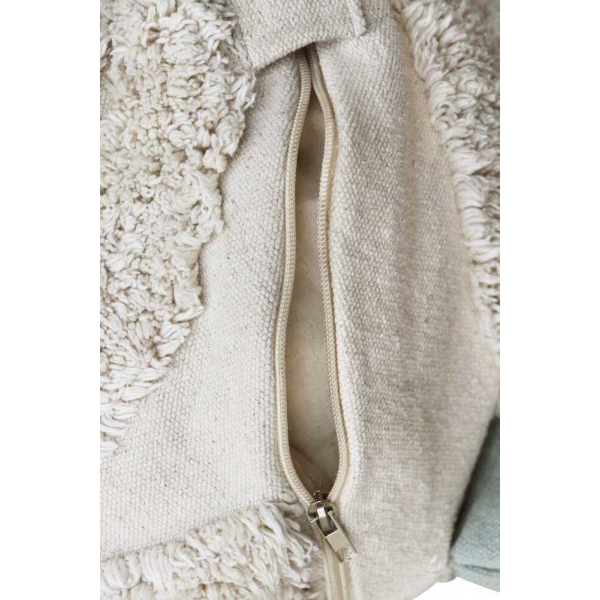 Pagaminta iš tvirto drobinio audinio švelnių „matcha“ atspalvių pagalvėlė atlieka dvi funkcijas: tai..