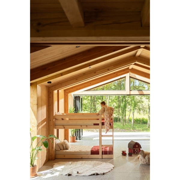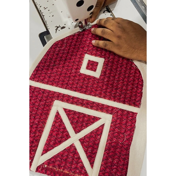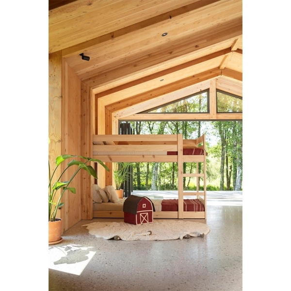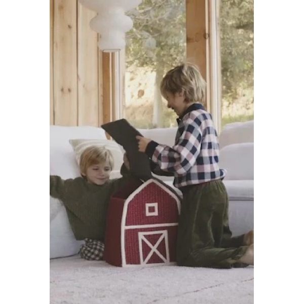Sveiki atvykę į ūkį! Šis rankų darbo krepšelis, įkvėptas ūkio namo, turi iš vienos pusės atsidarantį dangtį, primenantį tvarto stogą. Erdvus vidus puikiai tinka žaislams ar antklodėms laikyti. Pagamintas iš medvilninių virvelių ir pripildytas perdirbto poliesterio iš PET butelių, šis krepšelis derina tvarias medžiagas su kaimišku stiliumi, todėl bet kuriame vaikų kambaryje jis yra ir dekoratyvus, ir praktiškas daiktų laikymo sprendimas.