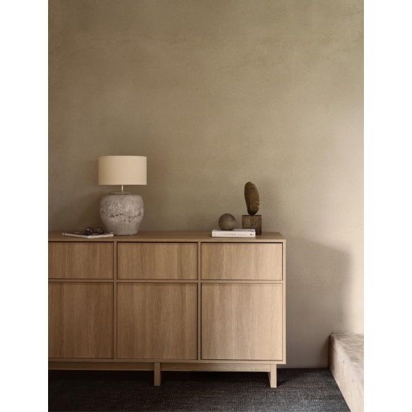 Komoda spinduliuoja KYO kolekcijai būdingą eleganciją, kurią kuria švarios linijos, tvirtos formos ir šilti medžio atsplaviai. Komodos dizainą įkvėpė skandinaviška ramybė ir japoniškas minimalizmas. Šis baldas išsiskiria gerai apgalvotais dizaino elementais ir gali „augti“ kartu su jūsų šeima bei suteikia ypatingą harmonijos pojūtį interjere.