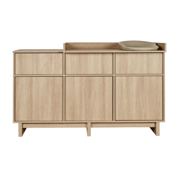Pagrindinis šios komodos išskirtinumas – modulinis dizainas. Ją galima derinti su atskirai parduodamu vystymo stalu ir papildomu padidinimu su atviromis lentynomis. Tai puikus ekspozicinis baldas, kuris žavi savo lengva ir tvarkinga išvaizda. Tai idealus pasirinkimas tiek kūdikio kambariui, tiek elegantiškam svetainės interjerui.