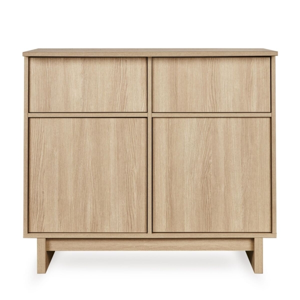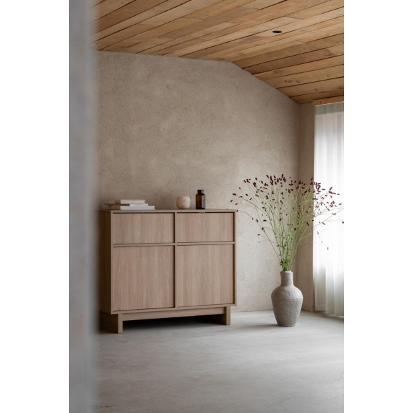 KYO komoda tobulai atspindi kolekcijos stilistiką, kurioje vyrauja švarios linijos, tvirtas siluetas ir šilti medžio atspalviai. Klasikinio dydžio komoda pasižymi praktiškumu ir patogumu – daiktų laikymas joje yra gerai apgalvotas. Durelėmis užveriamas skyrius ir du erdvūs stalčiai su PUSH TO OPEN sistema užtikrina patogumą kiekvieną dieną.