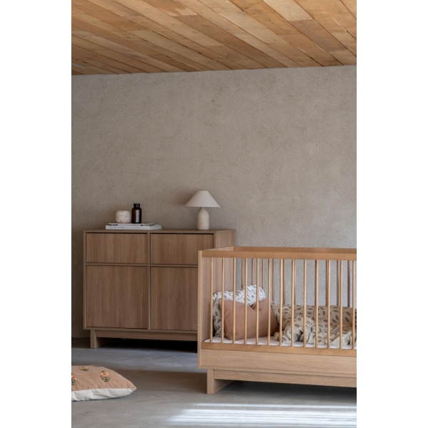 Švarios linijos, tvirtos formos ir šilti medžio atspalviai kuria laikui nepavaldų skandinaviško stiliaus lovytės dizainą su subtiliomis japoniško stiliaus užuominomis. KYO lovytė taps ramybės ir elegancijos šaltiniu bet kuriame kambaryje.