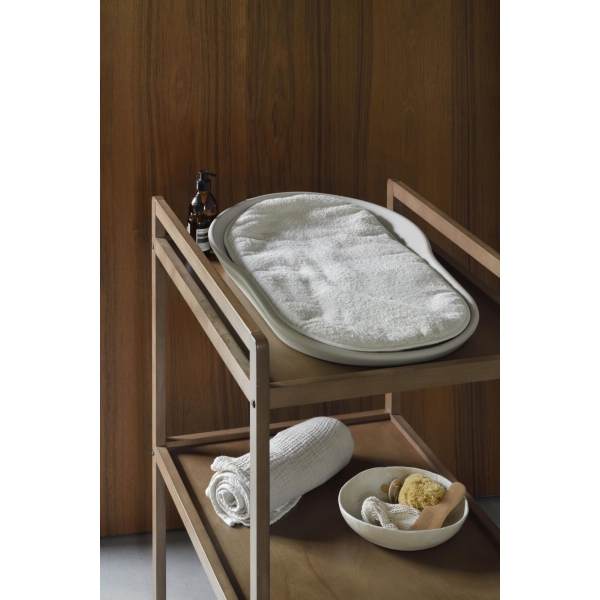 Vystymo kilimėlis turi minkštą pagrindą, pagamintą iš aukštos kokybės kilpinio audinio, kuris yra TERRY CLOTH kolekcijos dalis. Subtilus atspalvis puikiai derės prie bet kokios spalvos MAMEE vystymo lentos.